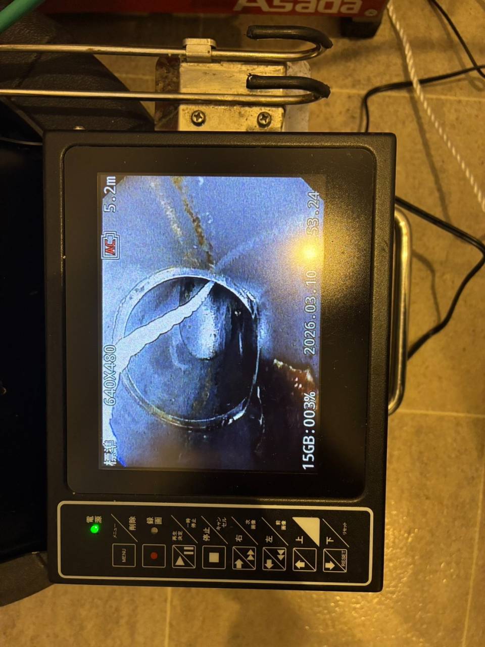 配管内部の状態を確認するために専用カメラを使用して調査を行いました。