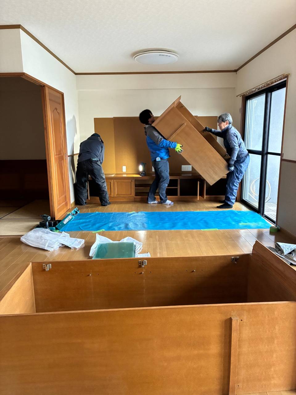 水廻りのと取替とクロス・床の貼替もあったためテレビボードの撤去をしました。